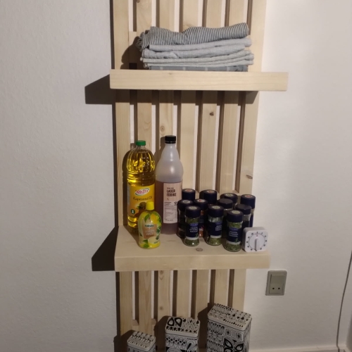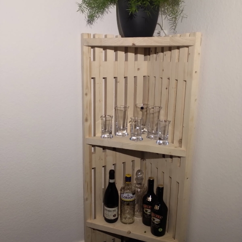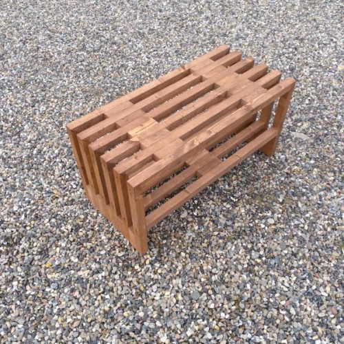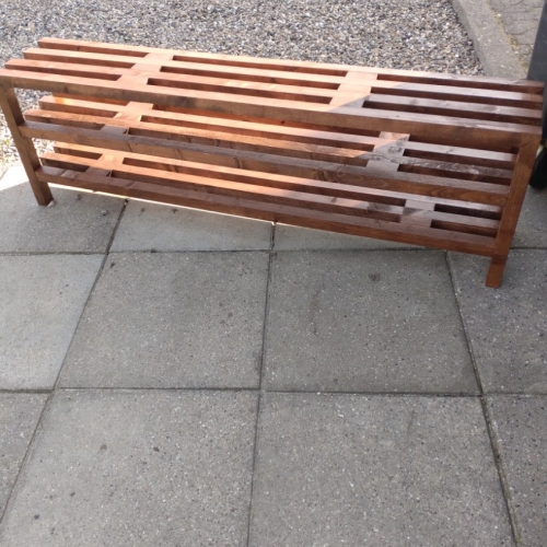 Opbygget på samme måde som en bænk, med hylder.