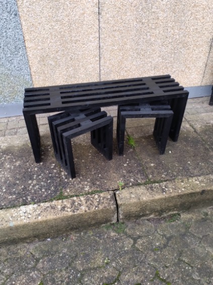 2 taburetter og 1 bænk