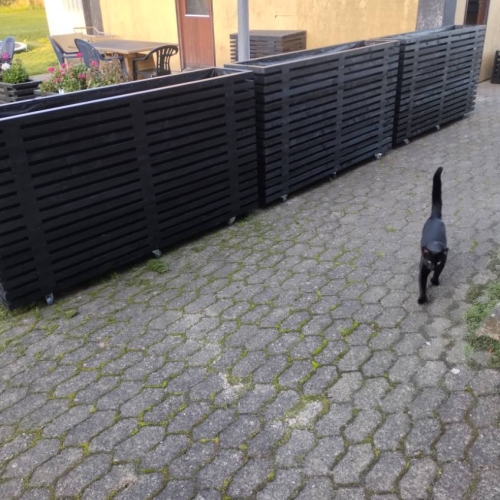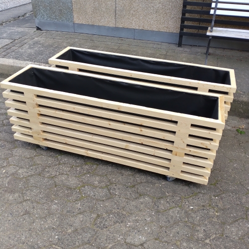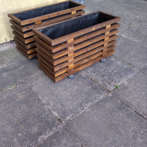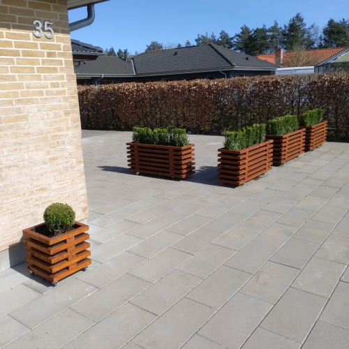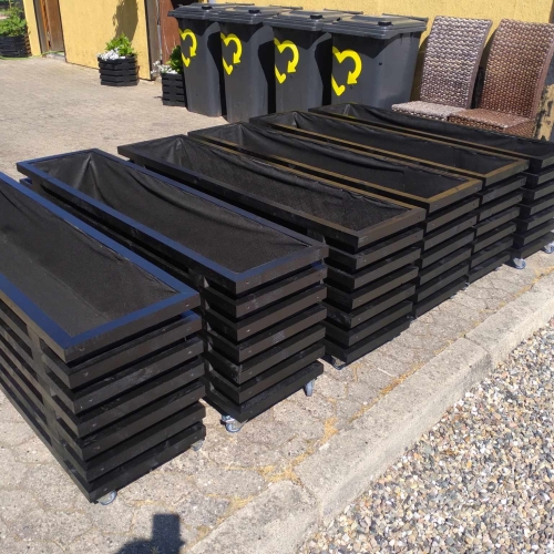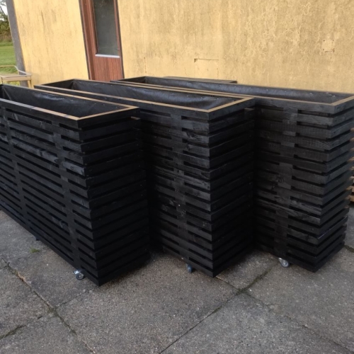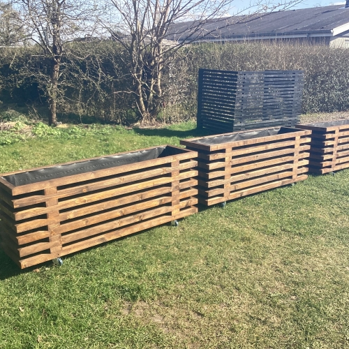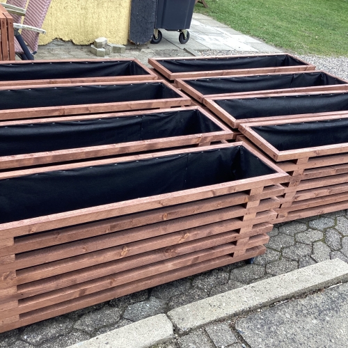 Det giver mulighed for at få lange plantekasser til større terrasser, høje plantekasser i træ til afskærmning eller smalle plantekasser til mindre altaner. Vi producerer også store plantekasser i træ til haveanlæg og erhverv.